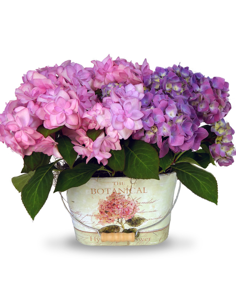 Overflowing with a beautiful assortment of 4-in hydrangea plants this keepsake tin container makes a sweet heartwarming and long-lasting gift!