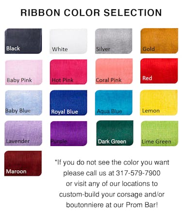 PLEASE NOTE: If you have specific requests we ask that you come to any of our store locations for a build-it-yourself prom bar. You can hand-select the flowers, ribbon, accessories, and more!